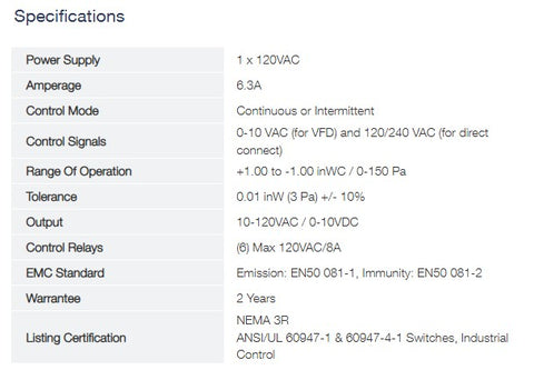 A simple modulating fan control designed to control and maintain common duct pressure for single- and mult-story clothes dryers, kitchens and bathrooms. This is achieved by modulating the speed of models EFV, or BEFx.